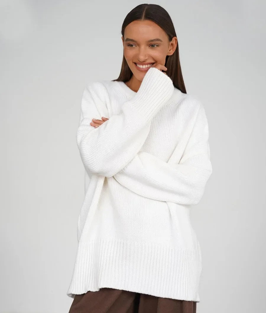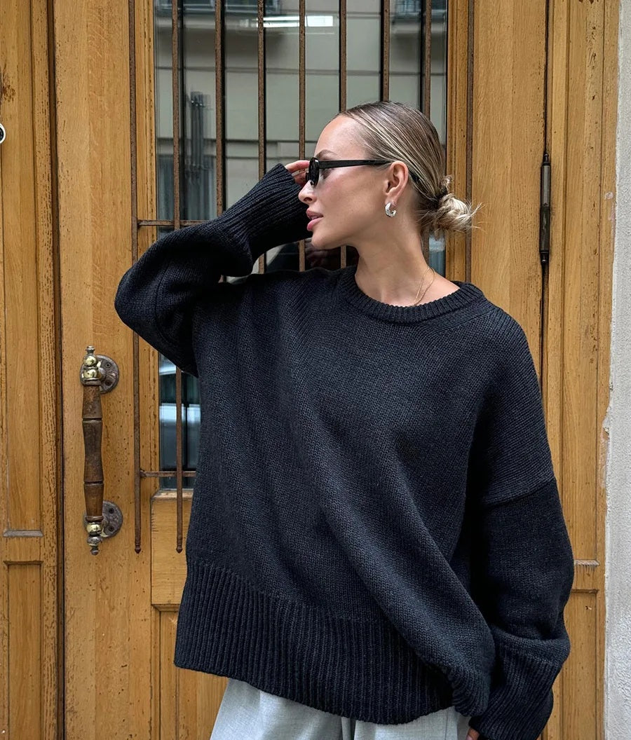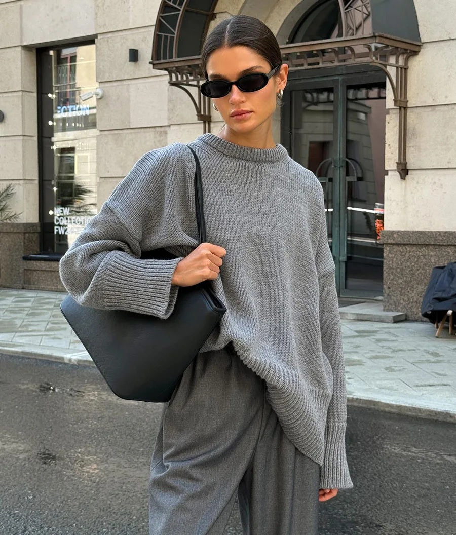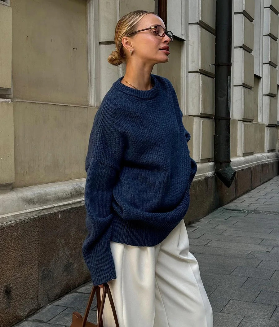 Embrace warmth and comfort with Blubelle Knit, a thickened oversized pullover sweater designed for quiet elegance and everyday ease.