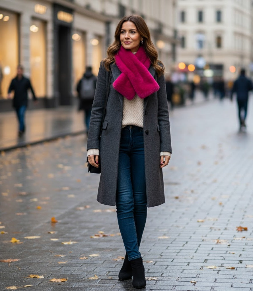 A soft faux-fur scarf that blends comfort, style, and cold-weather protection.