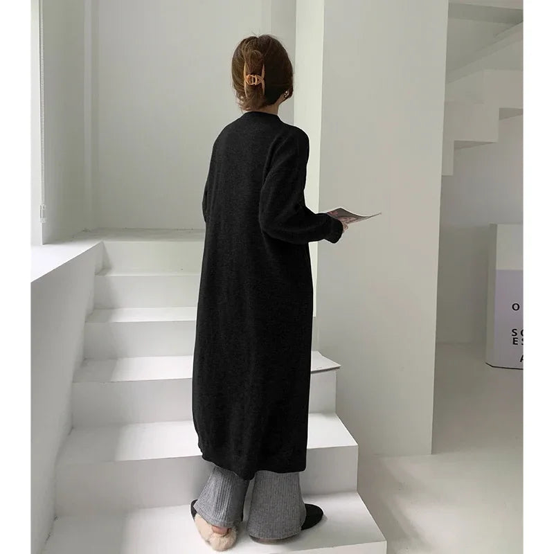 Women’s Chic Knitted Split Dress – Vintage O-Neck Long Wool Sweater Dress for Autumn